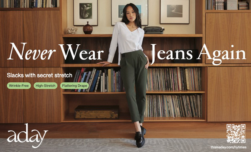 Aday’s design philosophy is rooted in stretch, structure, and sustainability—offering elevated essentials that work harder than traditional staples. The Turn It Up Pants were engineered to outclass jeans on every front: style, comfort, and performance.